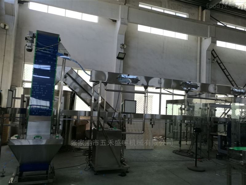 经过理盖后的瓶盖方向*地进入瓶盖轨道,在轨道的上下方设有多组喷头,每组喷头可以从不同角度对瓶盖喷射高浓度臭氧水,喷射的高浓度臭氧水既对瓶盖进行杀菌也推动瓶盖沿着轨道前行, 利用臭氧水作为杀菌水时,由于臭氧水分解后的产物是水和氧气,不存在任何有害的残留物质,理论上无需对瓶盖再作处理,但实际生产过程中,由于瓶盖杀菌机出口与旋盖机距离很近,无法使残留臭氧*分解,因此,瓶盖经过臭氧水杀菌后还需要经过无菌水冲洗和无菌空气吹干处理。